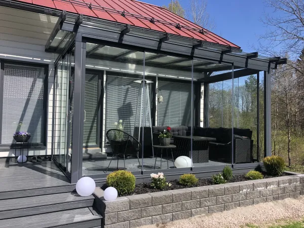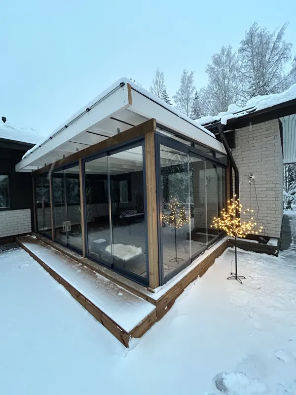 Energia- ja lämpötehokas terassilasitus varmistaa, että terassisi ei ole vain kesäkauden ilo, vaan voit nauttia siitä myös syksyn kirpeissä aamuissa ja talvikuukausien lumimaisemissa. Lasiemme tarkoituksena on vähentää lämpövuotoa ja parantaa energiatehokkuutta, jotta terassisi on ympäristöystävällinen ja kustannustehokas valinta.